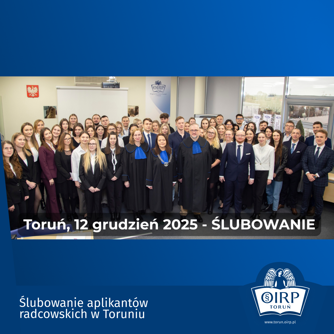 uprzejmie informujemy, że w dniu 23 grudnia 2025 r. Biuro Okręgowej Izby Radców Prawnych w Toruniu oraz Ośrodek Szkolenia Aplikantów będą czynne do godziny 12.00. Prosimy o uwzględnienie powyższej informacji przy planowaniu wizyty.Dziękujemy za Państwa wyrozumiałość.