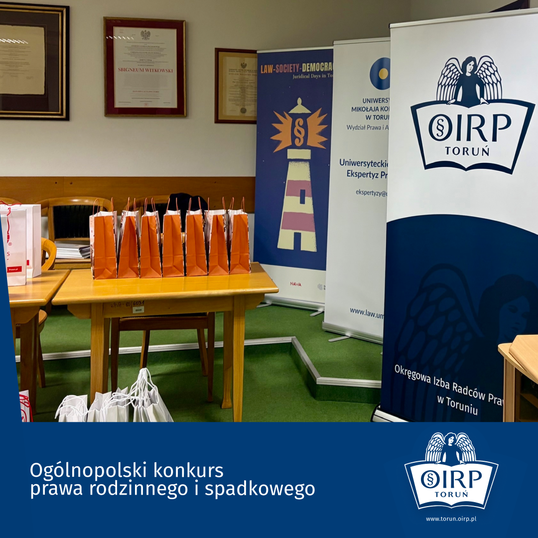 Okręgowa Izba Radców Prawnych w Toruniu była patronem przedsięwzięcia oraz fundatorem nagród dla laureatów konkursu, wspierając tym samym rozwój wiedzy i zainteresowań studentów w obszarze prawa rodzinnego i spadkowego.